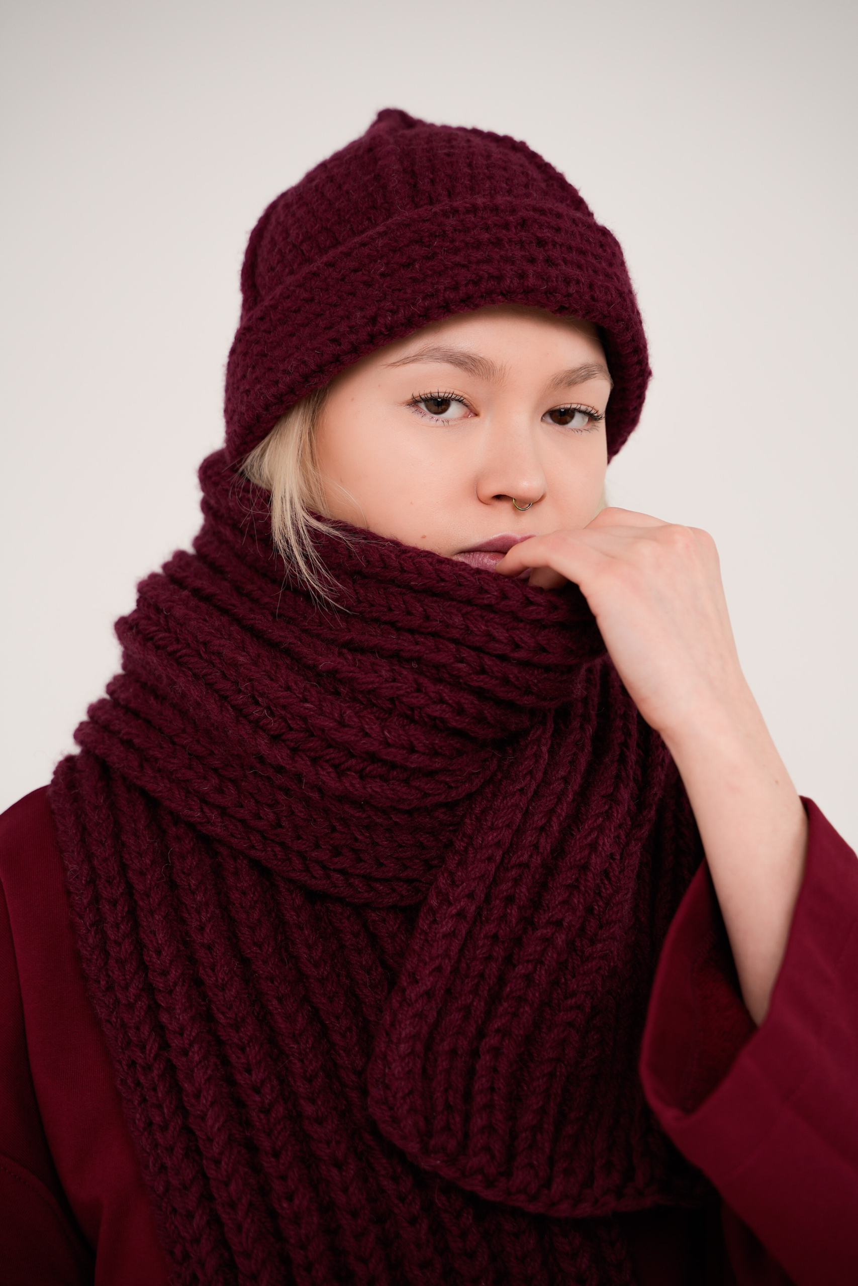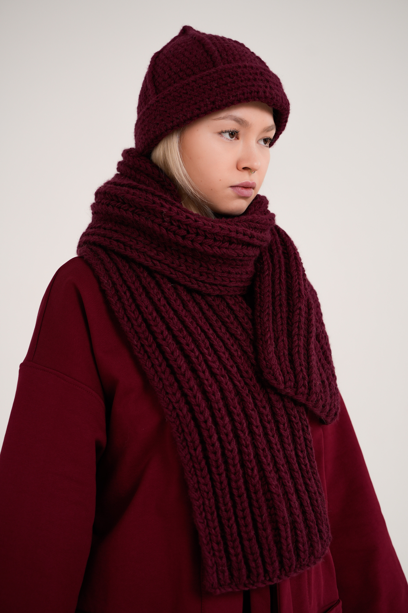 Шарф ручной работы, связанный спицами. Мягкое рыхлое полотно, хорошо поддающееся разной стилизации за счет своей структуры. Связан из смеси акрила и неколючей шерсти.