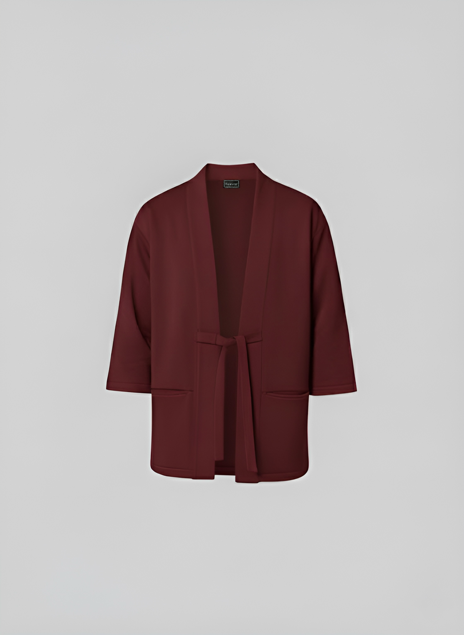Кардиган выполнен по плотного, компакт пенье футера. Имеет вместительные боковые карманы и вшитые химо.