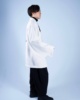 Аме — первое из четырех цветных кимоно молочного оттенка с иллюстрацией карты «Дождь» из колоды Ханафуда или корейской версии Хато. На декоративном пэтче изображен фрагмент того, как телохранитель вселенной «Возвращение кота» идет у реки под дождем. Рядом с пэтчем пришита тактильная рельефная бирка нашего бренда.