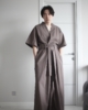 Брюки имеют свободный крой с вшитыми в высокий пояс декоративными химо, а также глубокие карманы.