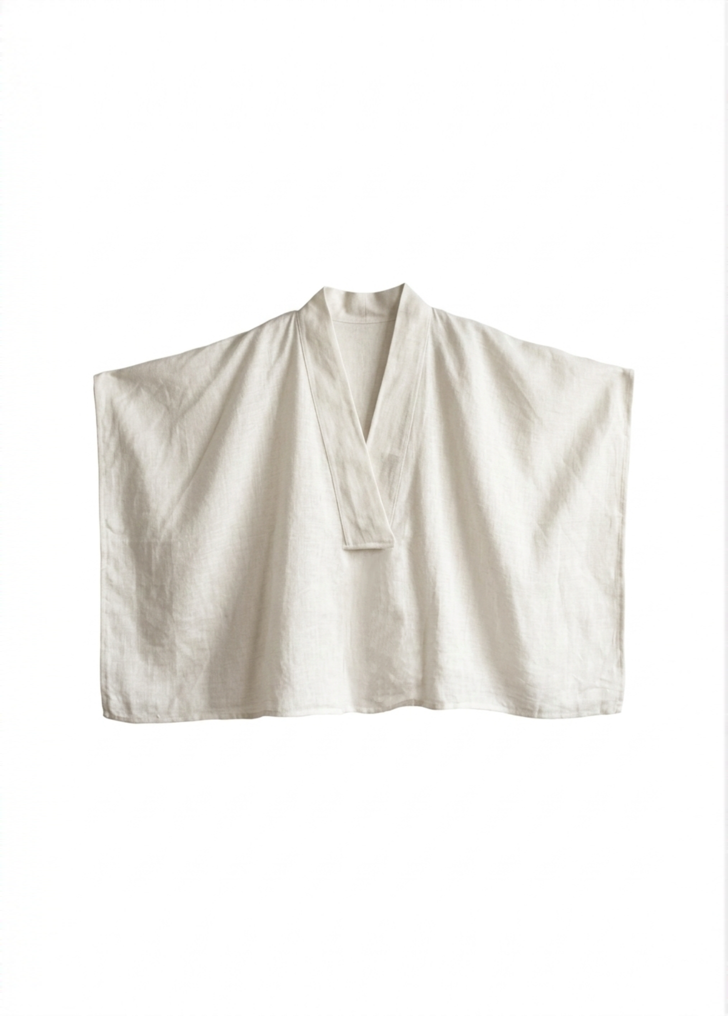 Льняное пончо с V-воротом (Молочный)