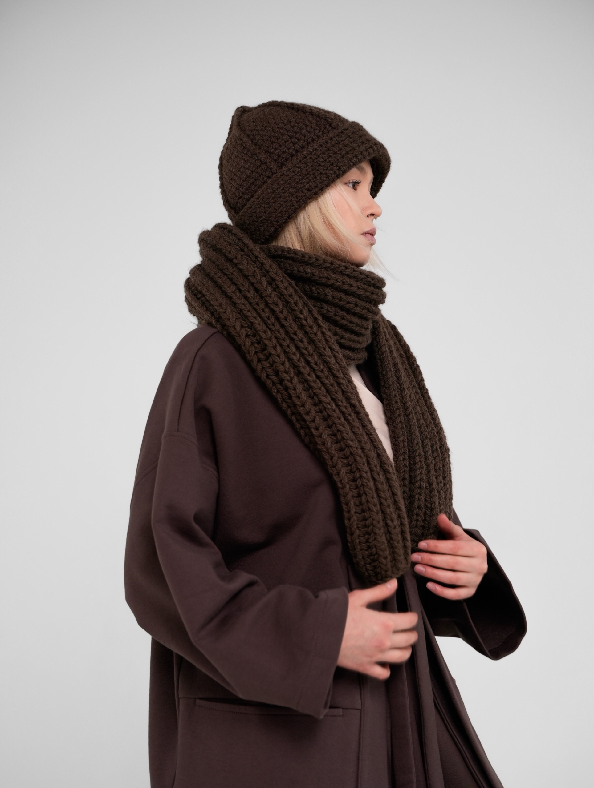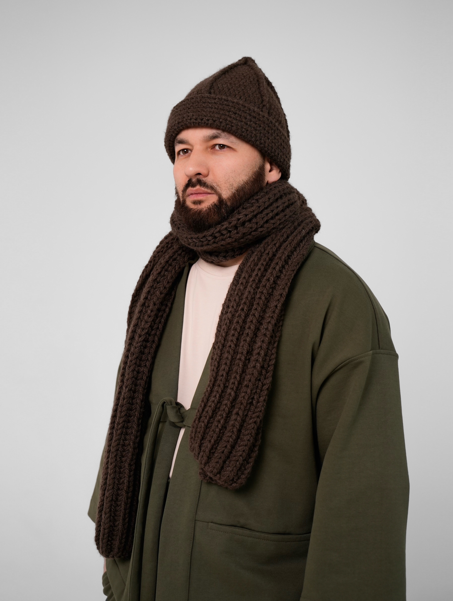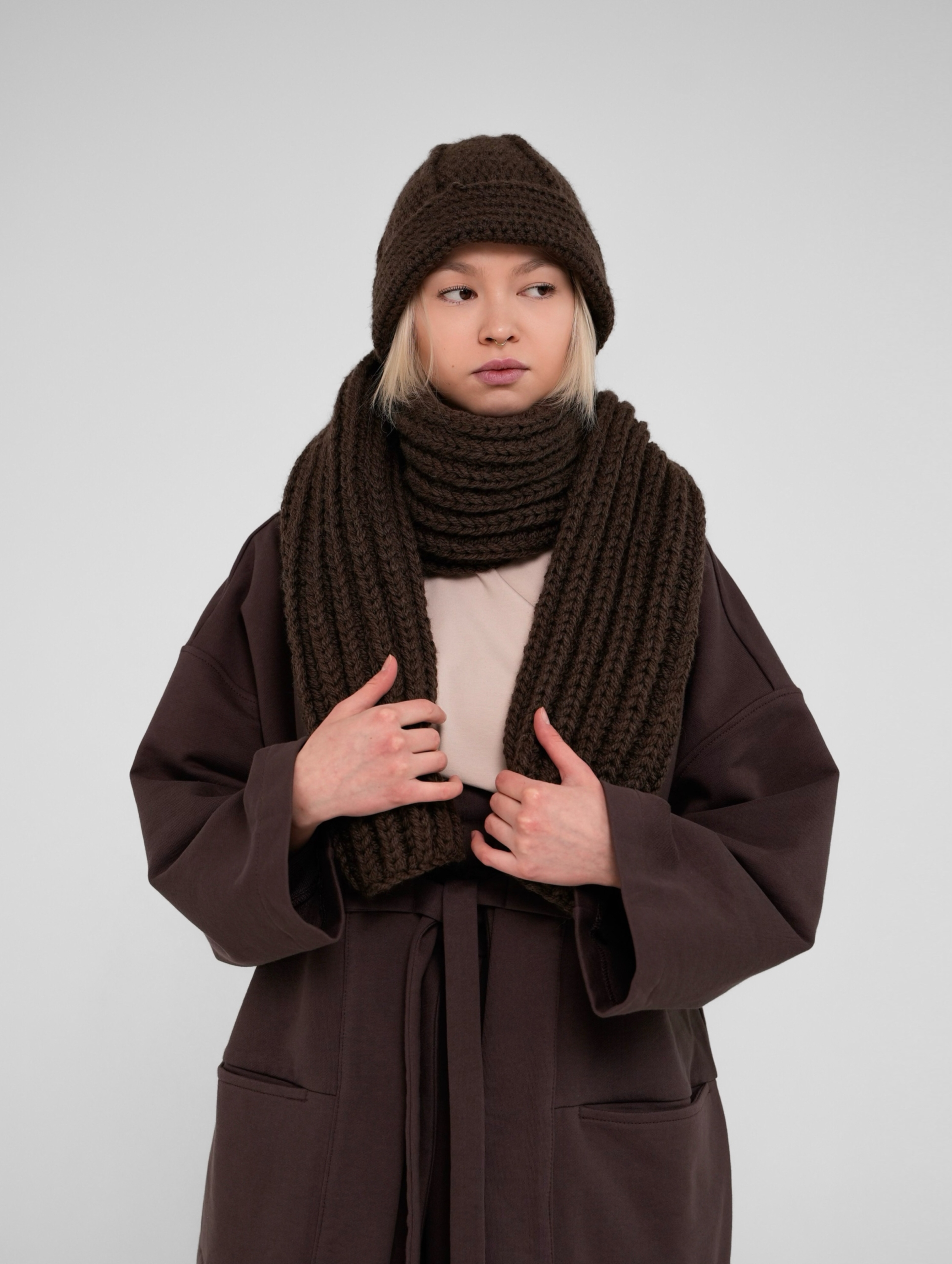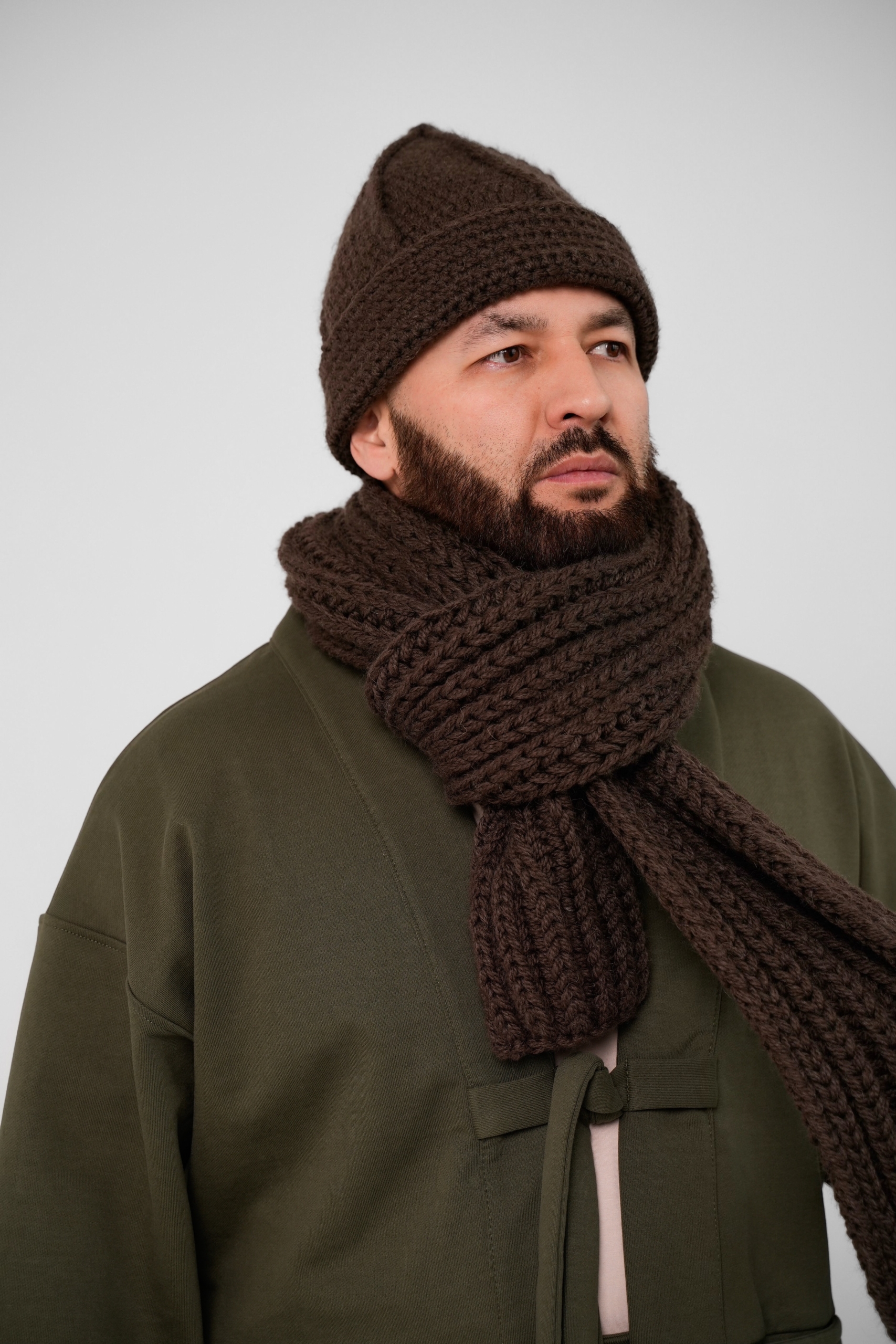 Шарф ручной работы, связанный спицами. Мягкое рыхлое полотно, хорошо поддающееся разной стилизации за счет своей структуры. Связан из смеси акрила и неколючей шерсти.