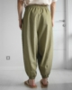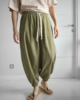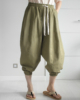 Шаровары имеют свободный крой и могут принимать укороченную форму за счет дополнительной обработки манжет с помощью эластичной резинки.