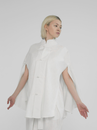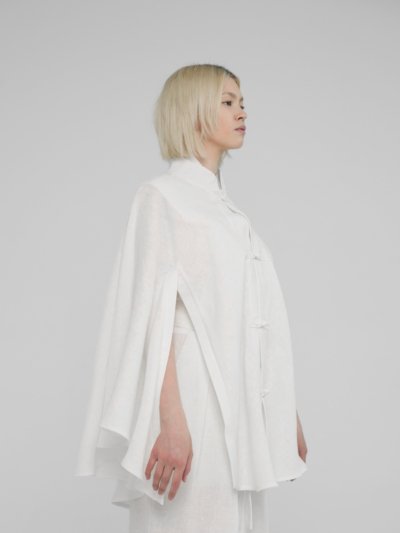 Льняной пончо-кейп с воротником стойкой (Молочный)