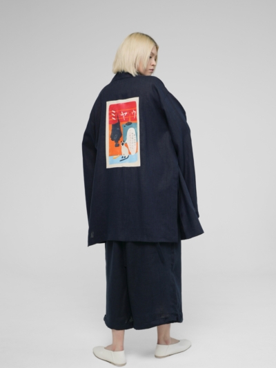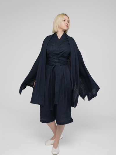 Льняной костюм Yatagarasu с кимоно-самуэ