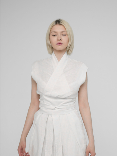 Льняной топ-кимоно с поясом (Молочный)